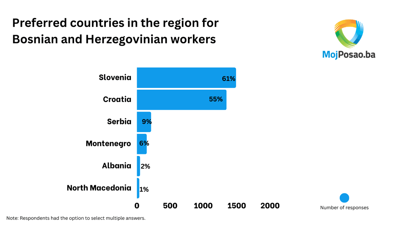 The data clearly shows that better salaries and working conditions are attracting highly educated workers from BiH to Croatia and Slovenia, making these countries the most desirable destinations for work within the region.