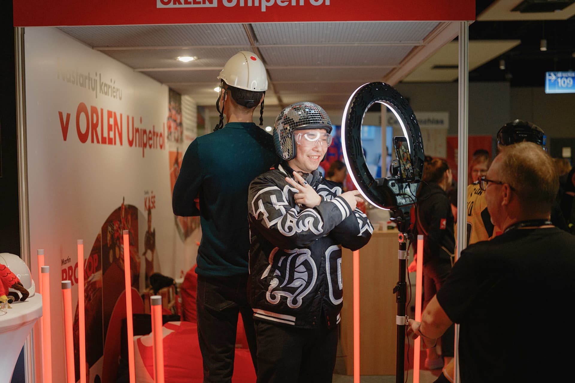 At other booths, visitors could see what equipment a police car crew carries on duty or check out unusual weapons and “DIY” contraband confiscated by the Czech Prison Service. Fun activities weren’t left out either—Orlen Unipetrol hosted remote-controlled hydrogen car races, while Form Factory challenged visitors to hang from a horizontal bar.