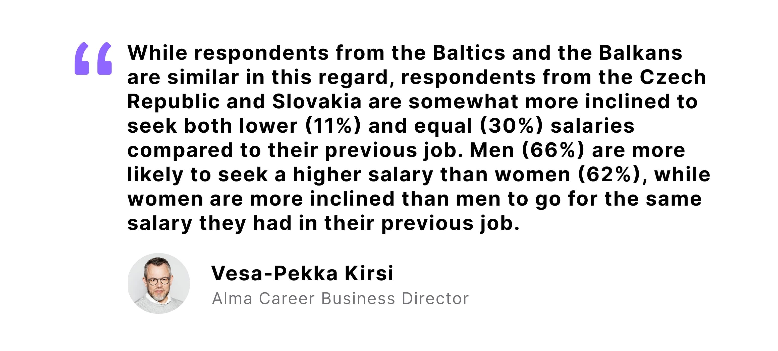 Although the reasons for seeking a higher salary are similar regardless of the region respondents come from, moving to a higher position is a slightly more common reason for respondents from the Baltics, as is inflation. On the other hand, respondents from Southeastern Europe are somewhat more likely to seek a higher salary due to increased experience and knowledge.