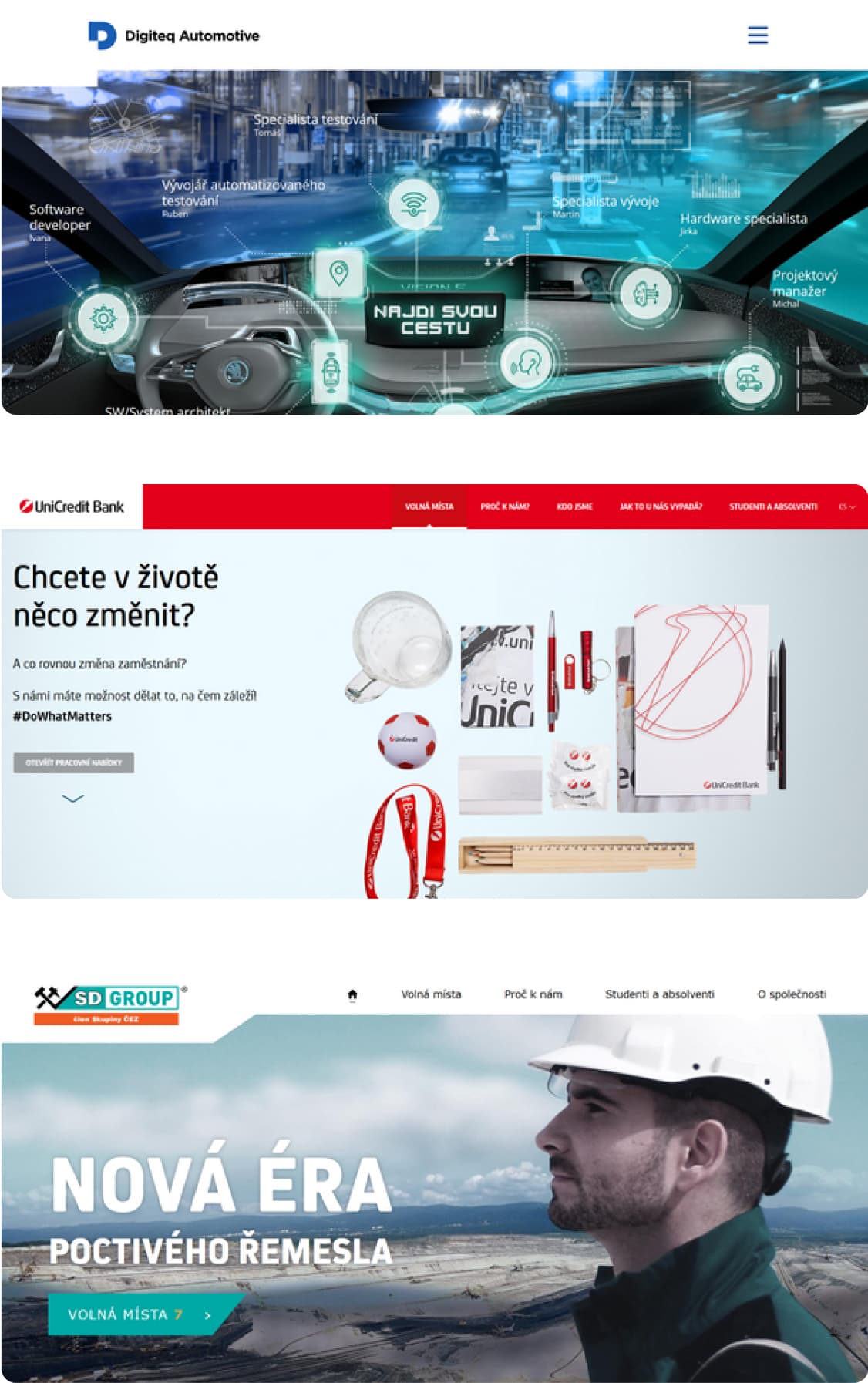 V rámci spolupráce na tvorbě kariérních stránek jsme vždy získali od HR marketingového týmu Alma Career skvělé nápady, odborné rady, velkou podporu i nadhled, který jsme potřebovali. Ať jsme tvořili návrhy, stránky samotné, nebo probíhala jejich implementace, pokaždé jsme se na Alma Career mohli spolehnout. Vytvořit pro naše potřeby ucelené řešení nebylo jednoduché, ale společnými silami jsme vše zvládli. Celou naši spolupráci i samotný výsledek vnímáme jako přínosný, naše stránky fungují, jak mají, získávají pozitivní zpětnou vazbu, a to je pro nás důležité.
